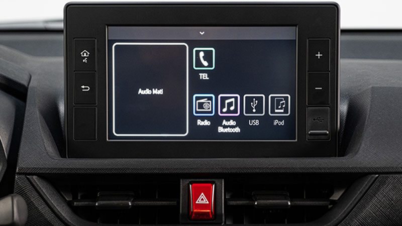 Màn hình giải trí trung tâm cảm ứng lên đến 8 inch kết nối điện thoại thông minh cùng hệ thống 4 loa hiện đại ứng dụng công nghệ trợ sáng giúp thao tác dễ dàng khi di chuyển trong buổi tối.