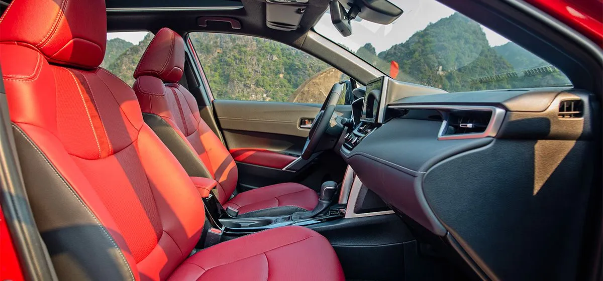 Toyota Corolla Cross được thiết kế tối ưu khoang hành khách mang lại trải ngiệm thoải mái, tiện nghi cho cả gia đình nhờ khoảng trần xe lớn. Cửa kính lớn kết hợp cùng cửa sổ trời mang đến không gian khoáng đạt cho người ngồi trên xe.